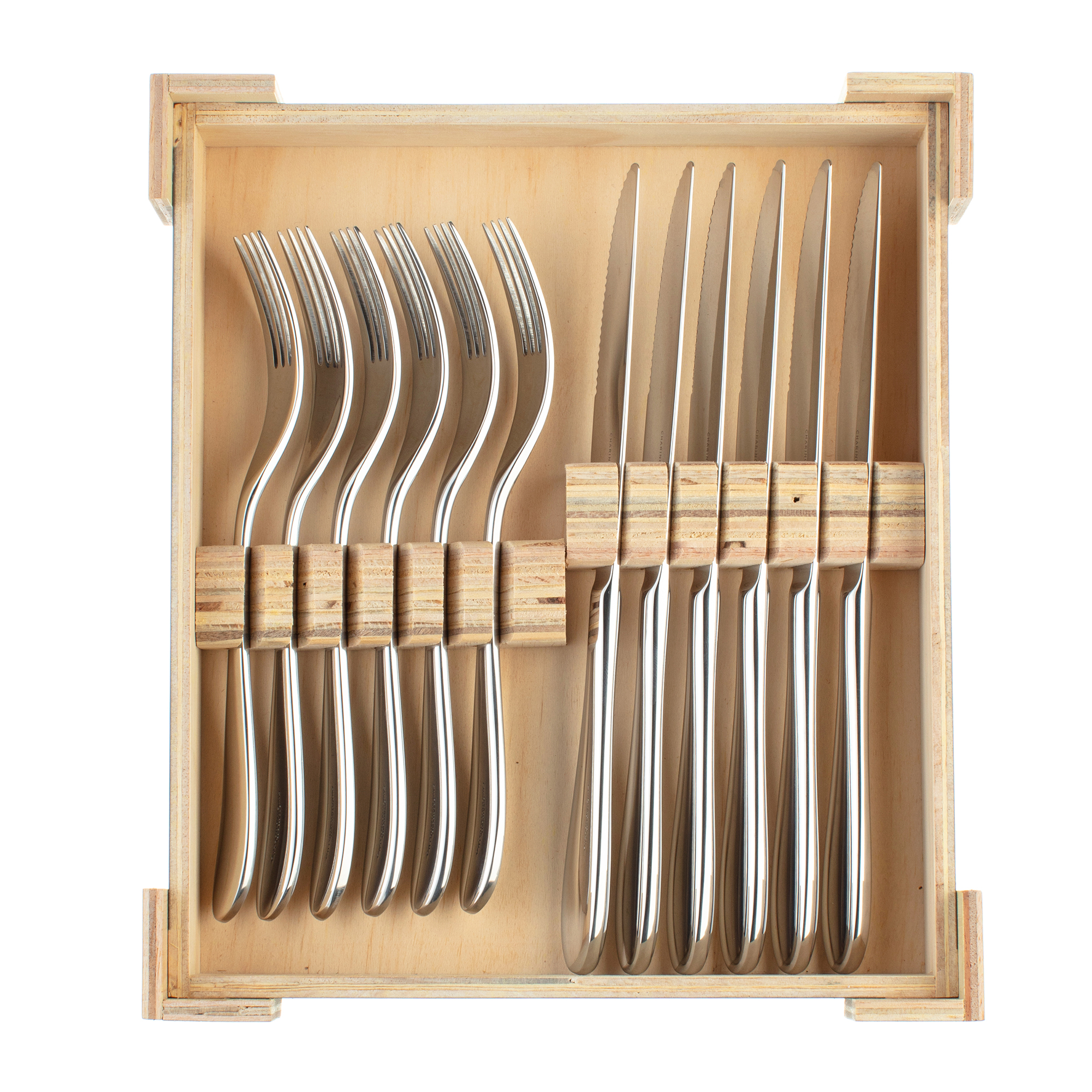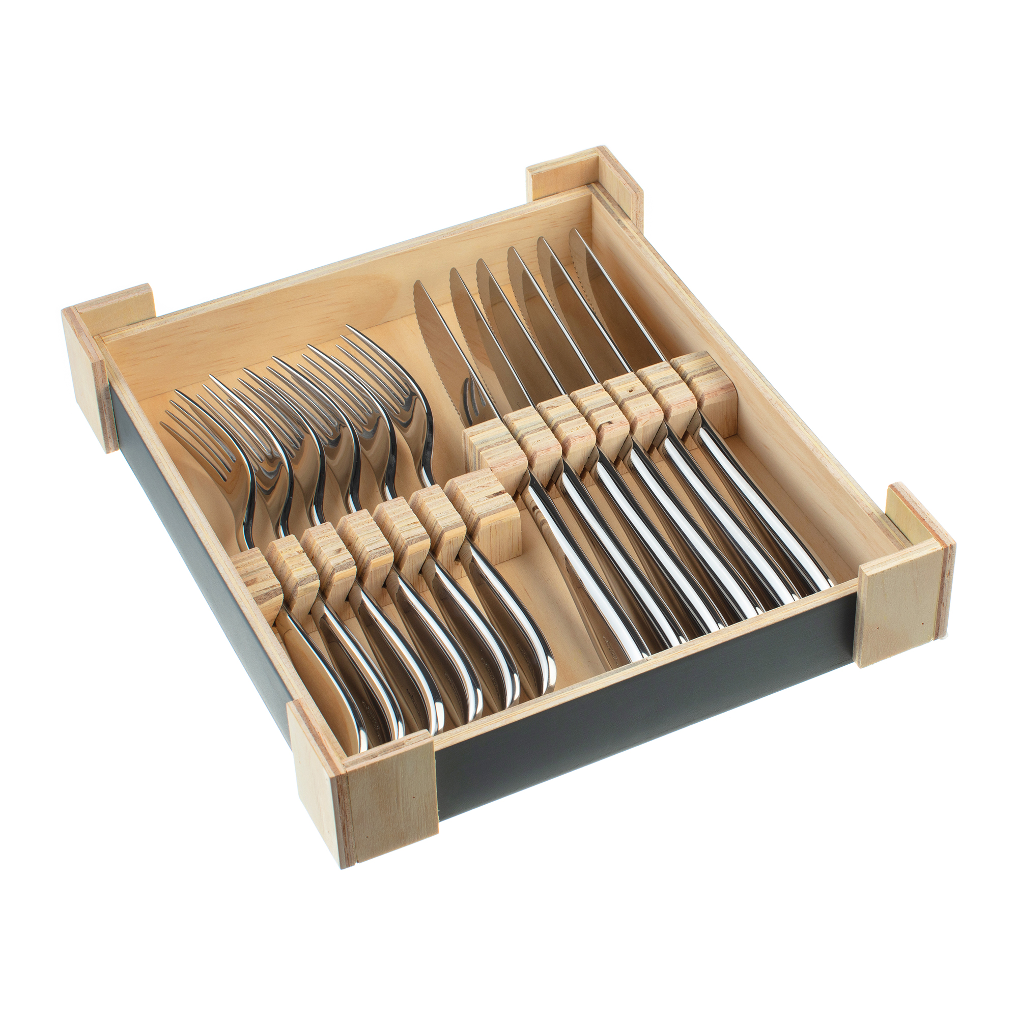 The Santol Mirror Wooden Box Steak Set 12 Piece includes: